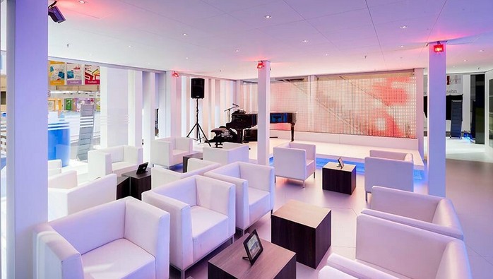 從平面安排上我們看到,一個(gè)功能齊全的展示空間多數(shù)要包含接待區(qū)、洽淡區(qū)、制作區(qū)、展區(qū)、庫房,有的還要有表演區(qū)、觀眾區(qū),這些不同功能的區(qū)域從整體風(fēng)格上應(yīng)該一致,從形式到材質(zhì)、顏色都應(yīng)是相互呼應(yīng)的。
