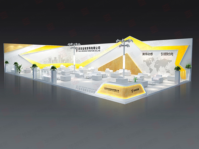契合安吉金城品牌形象和產(chǎn)品特性,采用立體結(jié)構(gòu),再搭配燈具燈光的效果,襯托出展位簡(jiǎn)潔獨(dú)立,干凈的氛圍,突出一種后現(xiàn)代創(chuàng)新尚品味。